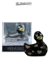 Le canard vibrant le plus célèbre du monde, "I Rub My Duckie" de la marque Big Teaze Toys, se présente dans l’édition "Romance" et plus précisément en version noire recouverte de coeurs couleur or. Son design revu le rends plus actuel et plus fun.